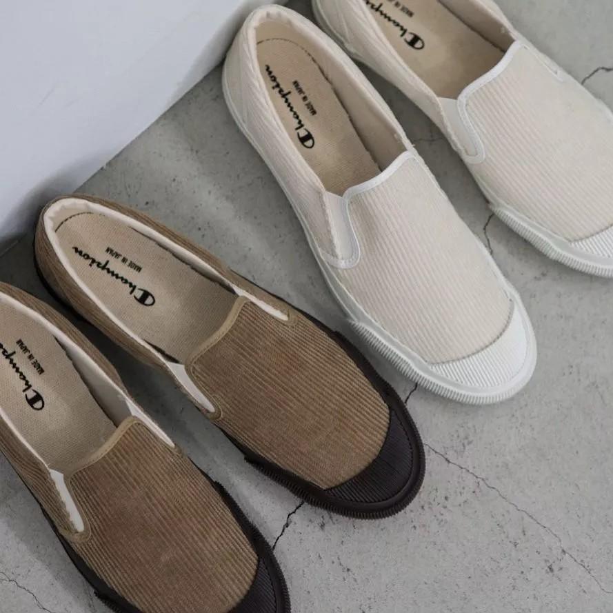 除了经典百搭的帆布鞋款以外,这款与 Vans slip-on 有着几分相似外貌的便鞋,官方称为 ONTARIO,风格上融合了复古军事感以及学院风的格调,配合灯芯绒材质塑造出一种轻巧优雅的质感。鞋垫上低调的 Made in Japan 字样会让很多人买单吧~