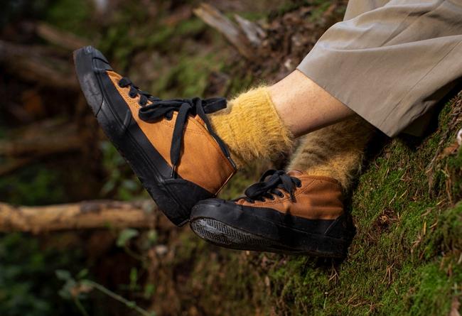鞋面使用 12 盎司有机帆布打造,相比以往的开口笑鞋型,将鞋帮加到了中帮的高度。鞋底的橡胶大面积上翻,为鞋款带来更适合户外运动的工装风格。