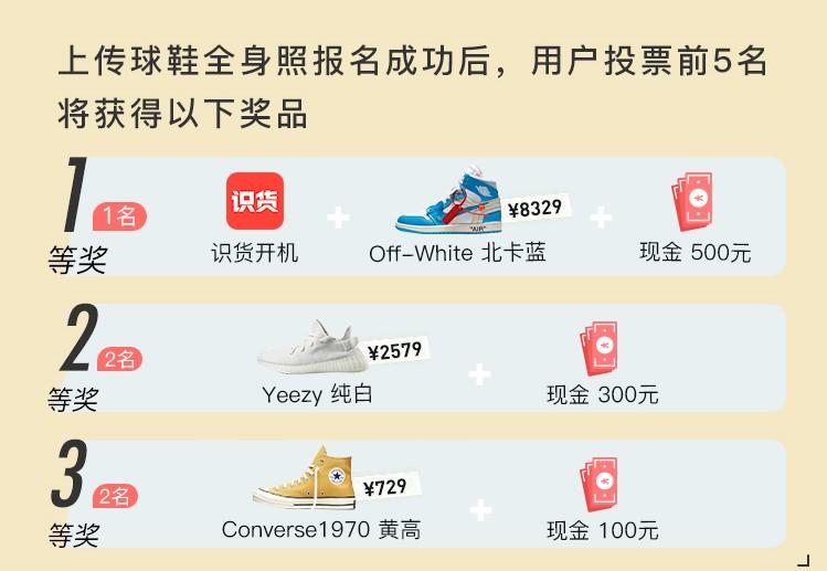 (3)照片一律要求原创,盗图取消参赛资格;识货app后台有监控系统,严禁刷票。
