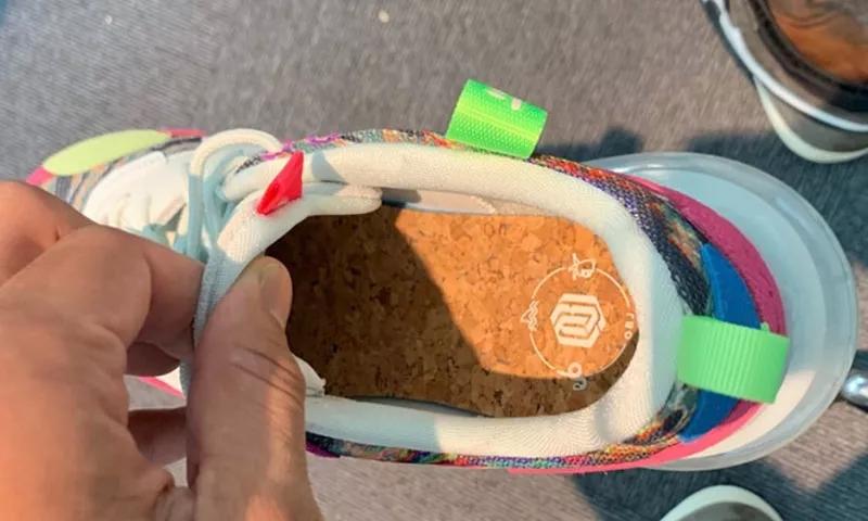 整双鞋采用亮眼的彩色设计:霓虹色的麂皮和网面、大理石染色印花、木纹鞋垫、双色气垫,不管从哪个角度看,都有吸睛的点,完全符合他高调的性格