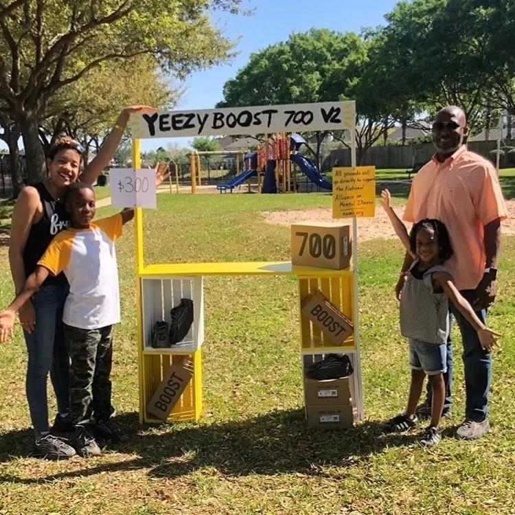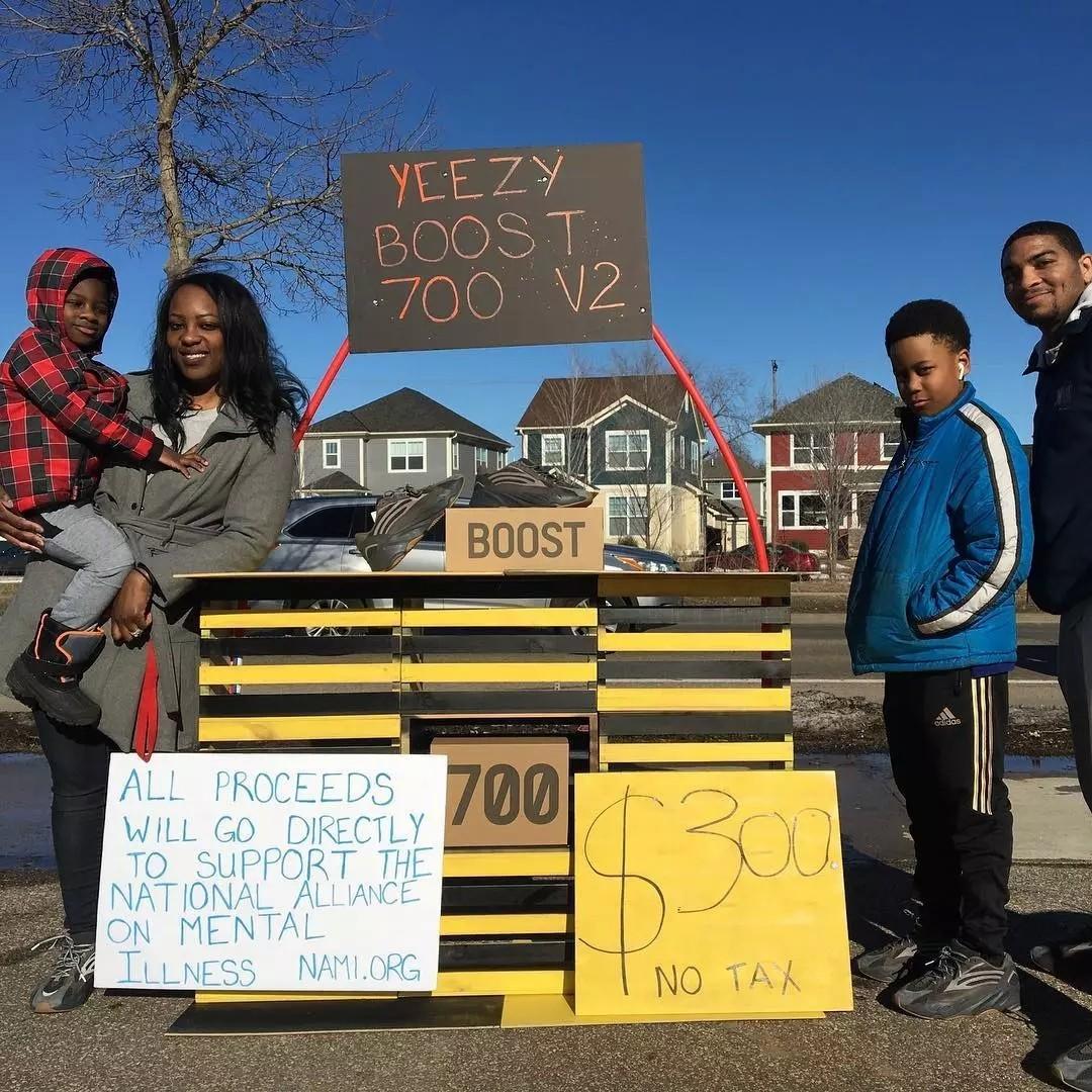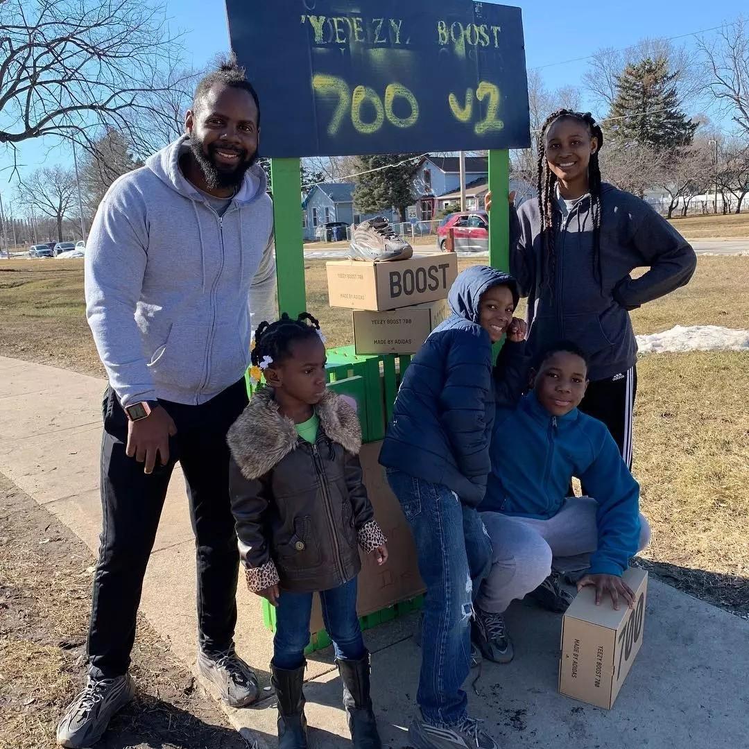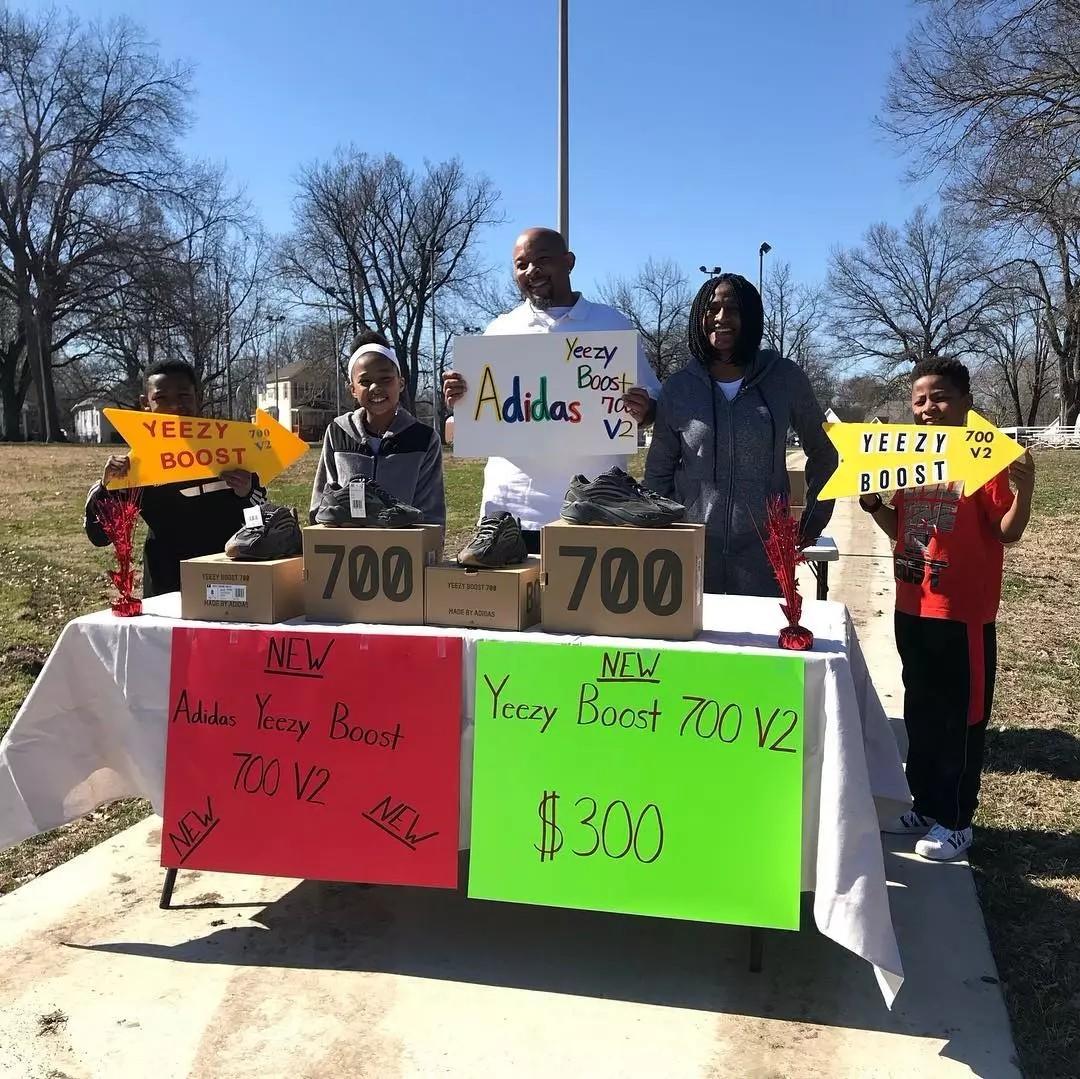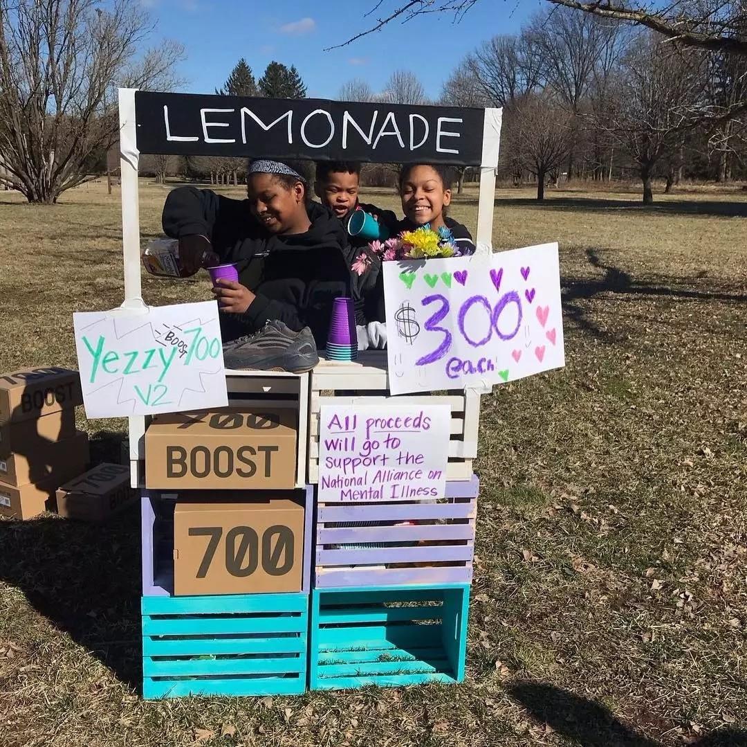 这一次他和全国各地的家庭合作,在自制柠檬水摊上售卖YEEZY,这个想法不仅是为了让家庭成员间的关系更加密切(可以理解为亲子活动),并且希望通过贩售球鞋这一举动,来回报社区。
