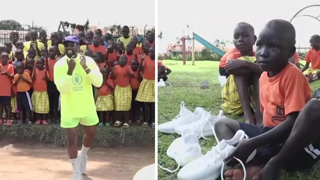 同时还将这双总统同款的白椰子免费赠送给了乌干达的孩子,整整四个大旅行袋: