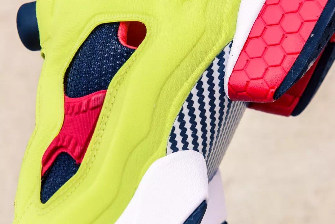 此次Reebok InstaPump Fury OG忠实还原元年初代的细节设计,也复刻了OG的经典配色。1994年,设计师Steven Smith想要更好体现“Fury”这个主题,所以选用了在当时看来非常激进的荧光黄色和亮红色配色。