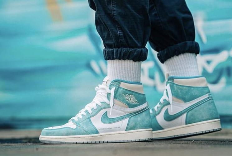 推荐理由:这双AJ1以白色,蒂芙尼绿为主色调,视觉效果十分的清爽,鞋面做旧的皮革,呈现出了极佳的质感,侧面的字体彰显其独特的身份,极其醒目!