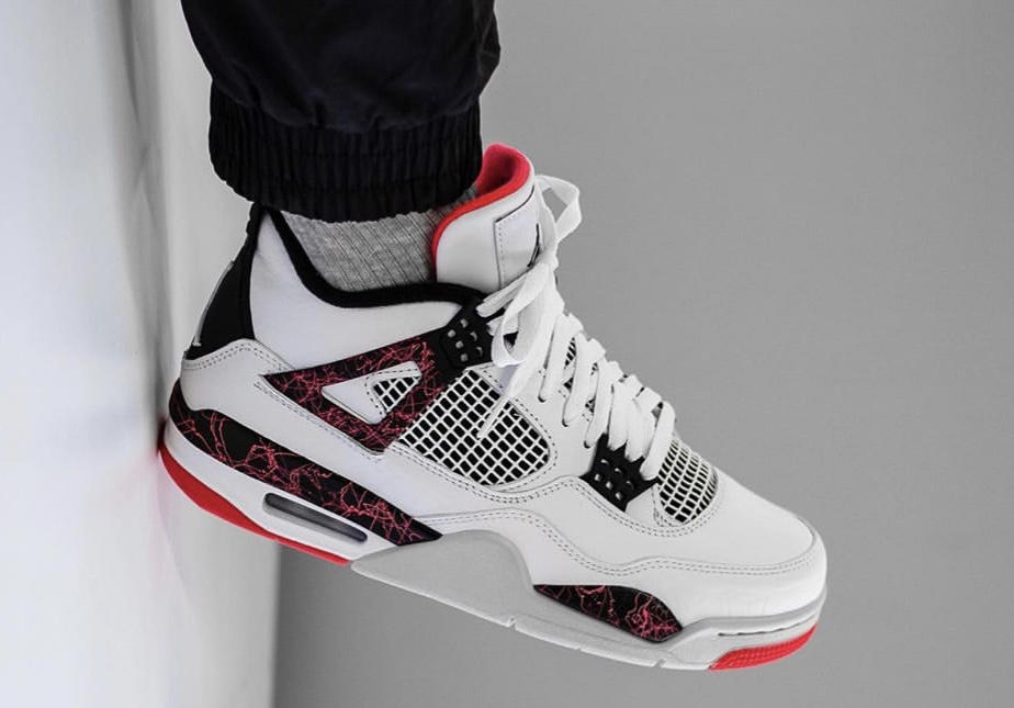 推荐理由:这双 AJ4采用黑、白、红三色装饰质,在清爽的白色格调之余,以熔岩红和大理石纹装饰,既有夺目的反差点缀效果,又有精致细节的视觉跳动感。