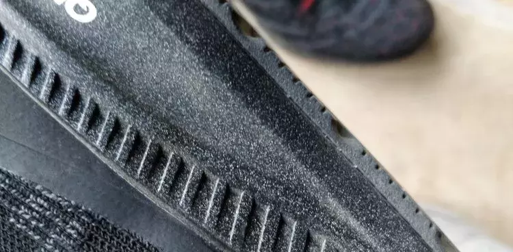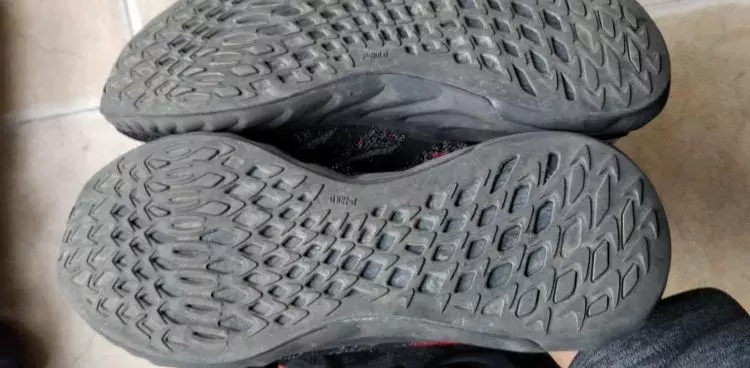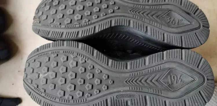 钛速:外底最厚,花纹像登山鞋,中底有穿着痕迹不明显(金属颗粒喷涂,有一定遮盖作用)