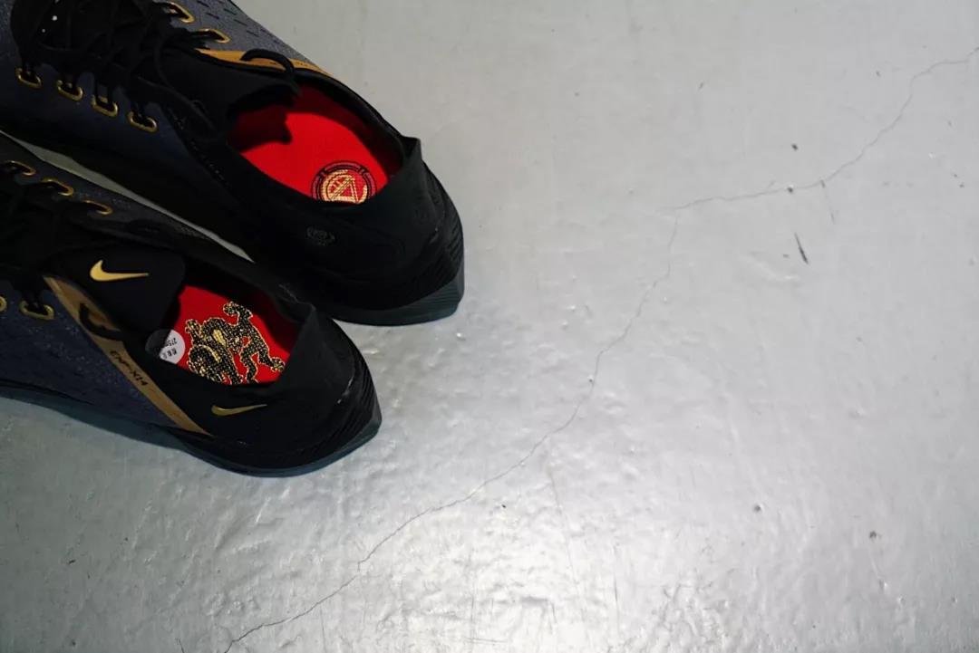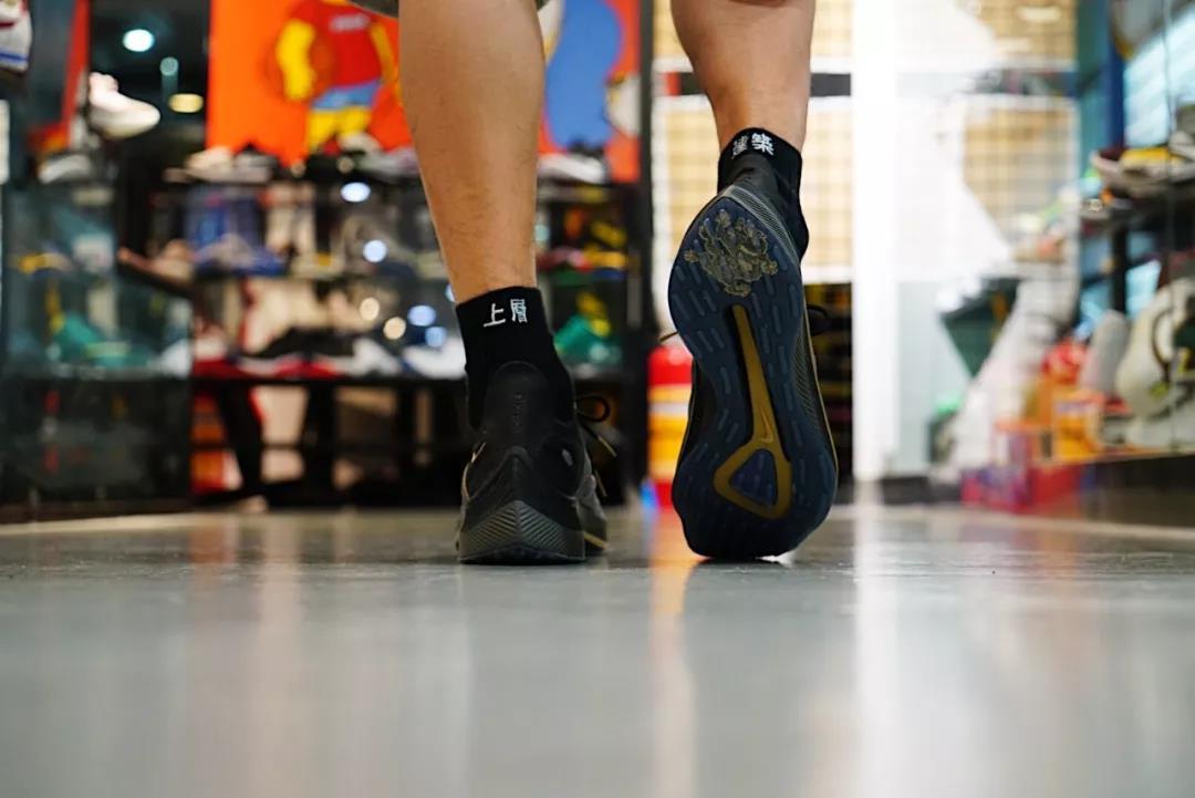 半透明鞋面以中国风味浓郁的龙纹和祥云纹理呈现,细节辅以金色装饰,也有霸气的质感