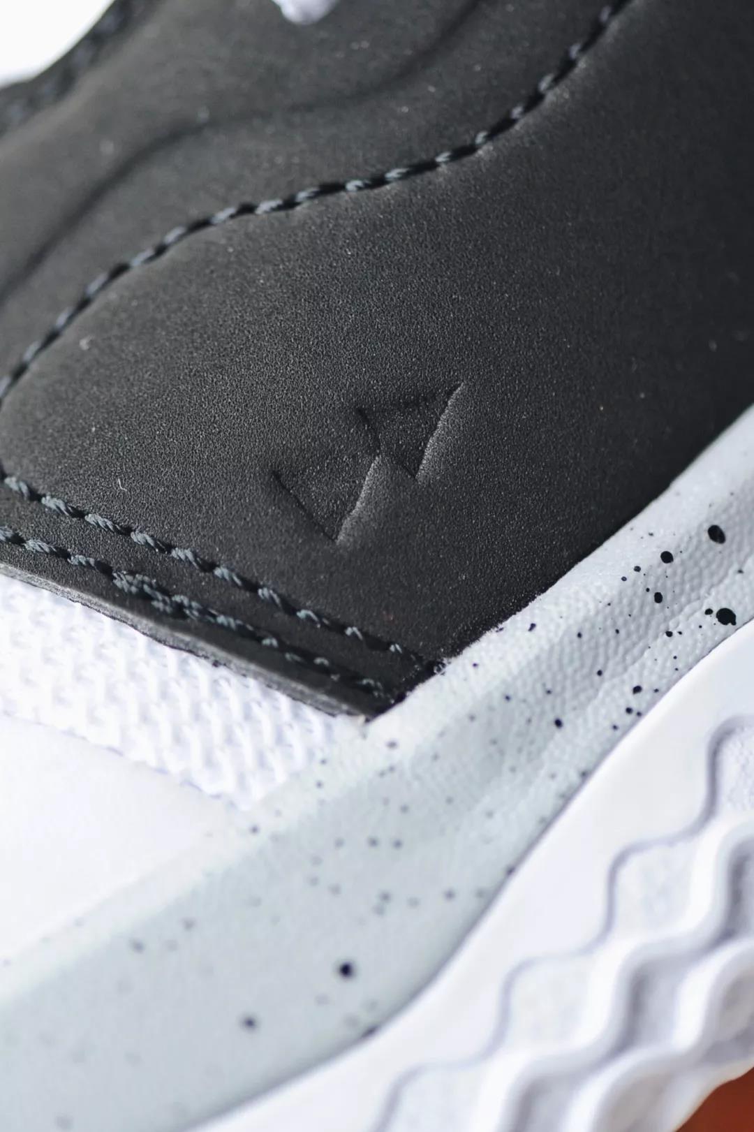 鞋身采用白色织物进行塑造再以黑色细节进行月球主题细节刻画
