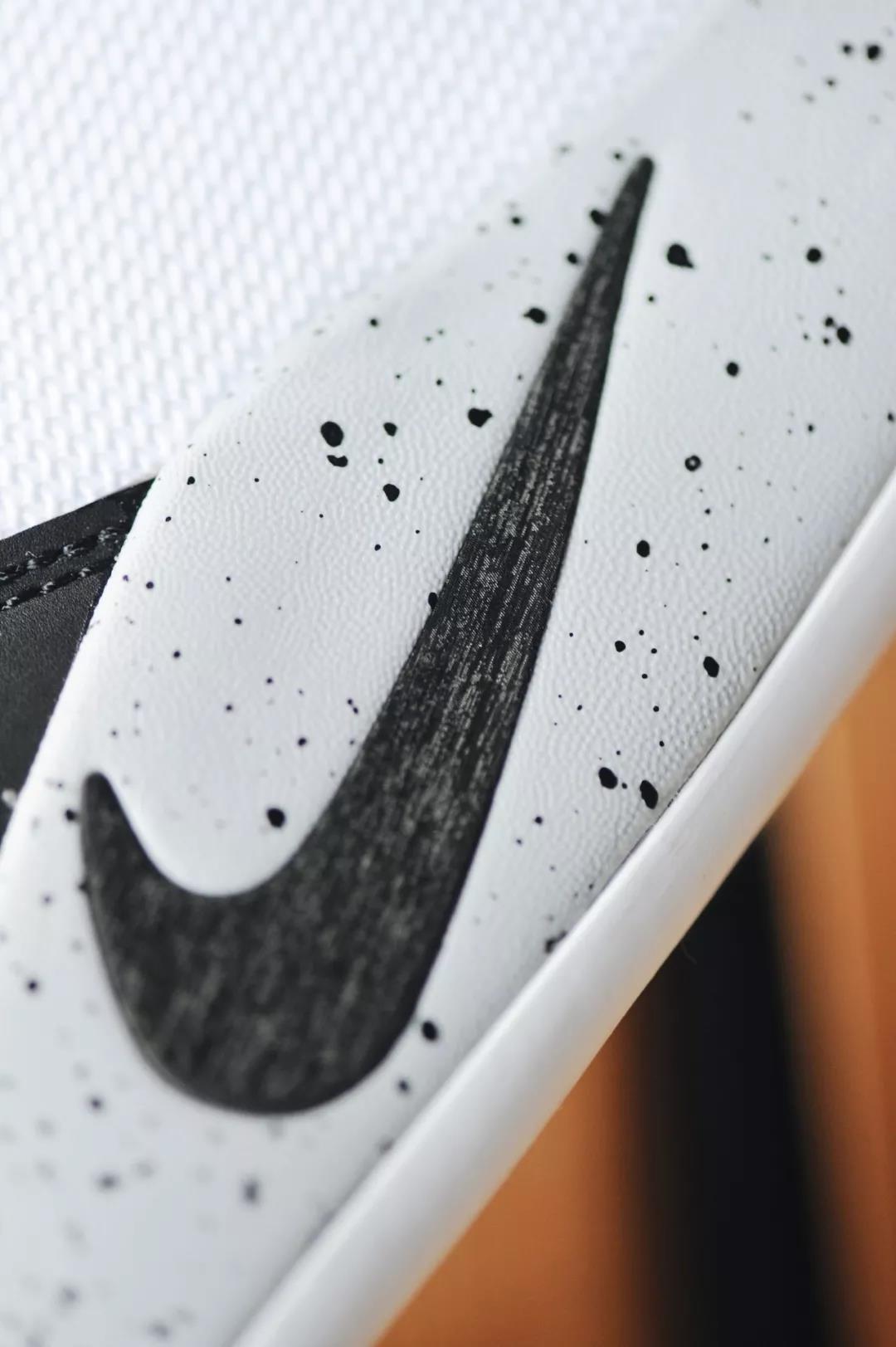 配合月球的主题,中底以灰色为主调加上泼墨的效果处理,Nike Swoosh 也以别样质感呈现。