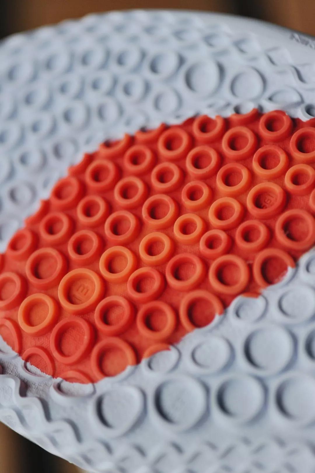 外底设计灵感来源于月球表面的陨石坑。每个圆圈的大小直径不同,看起来还是比较复杂,而且在个别圆圈内,有关于 PG 一些比较有纪念意义的数字隐藏。