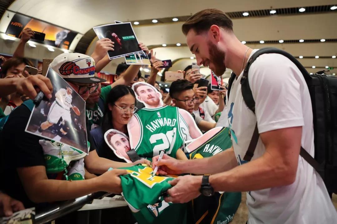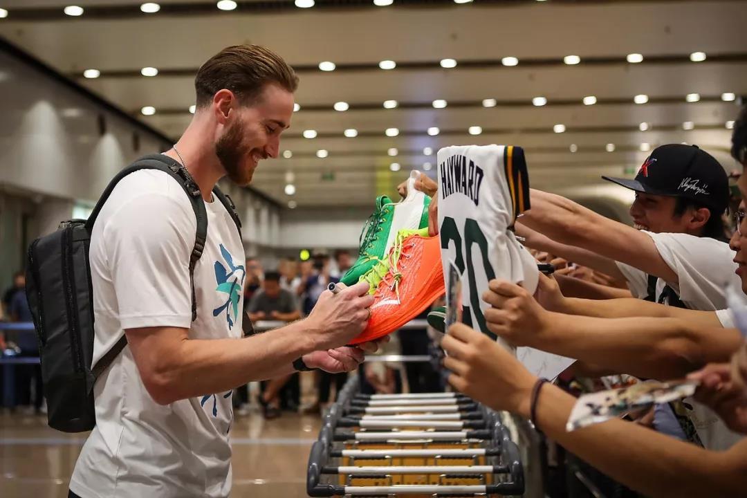 海沃德兴奋地向大家点头致意,球迷们以热烈的欢呼声回应,现场气氛达到高潮。尽管旅途奔波,海沃德仍主动和球迷们互动交流,耐心为他们签名并合影,展现了平易近人的绅士风貌。