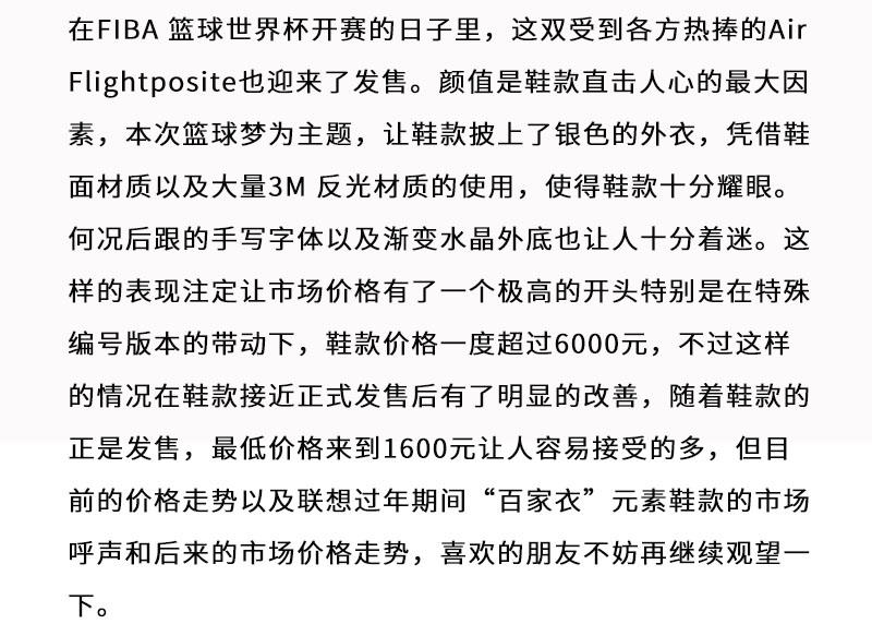 篮球世界杯来了,所以围绕这一主题的系列鞋款Nike Air Flightposite、Nike SHOX BB4、Alphadunk和Air Force 1 Hi都迎来了发售,同样万人瞩目的“黑曜石”AJ1也再掀抢购高潮,而更多于8月底发售的鞋款也随着市场的冷热有了明显的变化,具体情况本期继续为大家呈现。