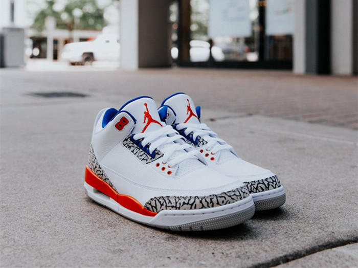 虽然鞋款在众多大牌扎堆上市的这周中并不算显然,但整双鞋以白色作为主色调,保留了爆裂纹这样的经典元素,鞋舌,中底以及后跟等处分别使用了代表尼克斯队的橙色和蓝色。这让这双鞋可以说是颜值在线。