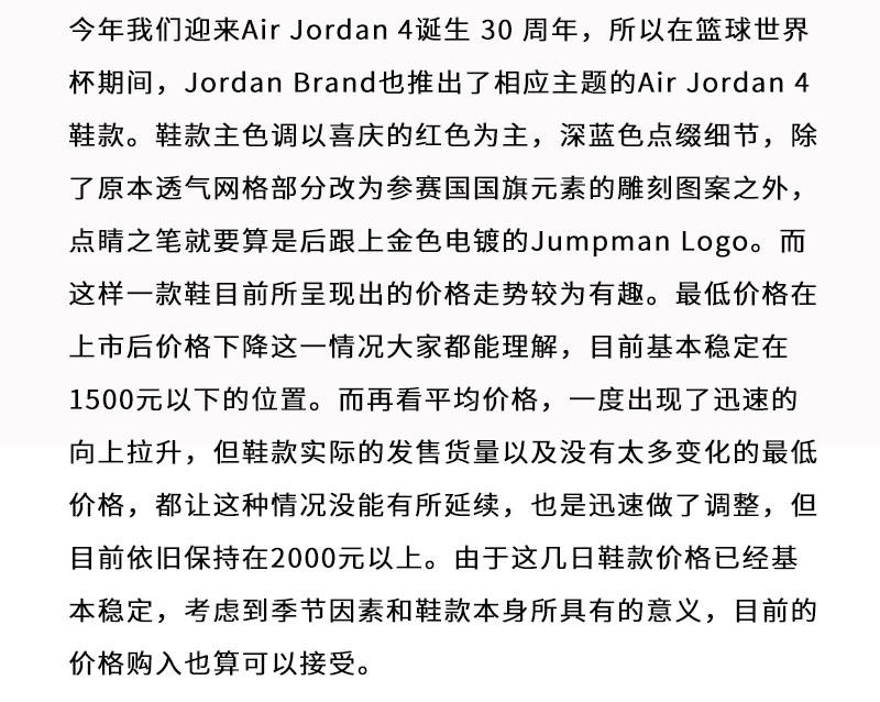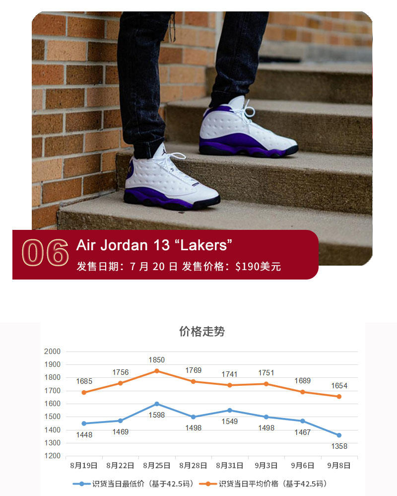 篮球世界杯比赛已经进入更为紧张激烈的淘汰赛阶段,而相关主题的鞋款也已经全部上市,这些鞋款在丰富大家选择的同时,也都不同程度的接受着市场的考验,Yeezy Boost 700 “Magnet”不在国内上市多少有些遗憾,Air Jordan 10“Camo”和Air Jordan 13 “Lakers”的发售似乎并没有提起大家太多的兴趣,而一些大家始终保持关注度的鞋款如今的市场表现又如何,本期继续为大家呈现。