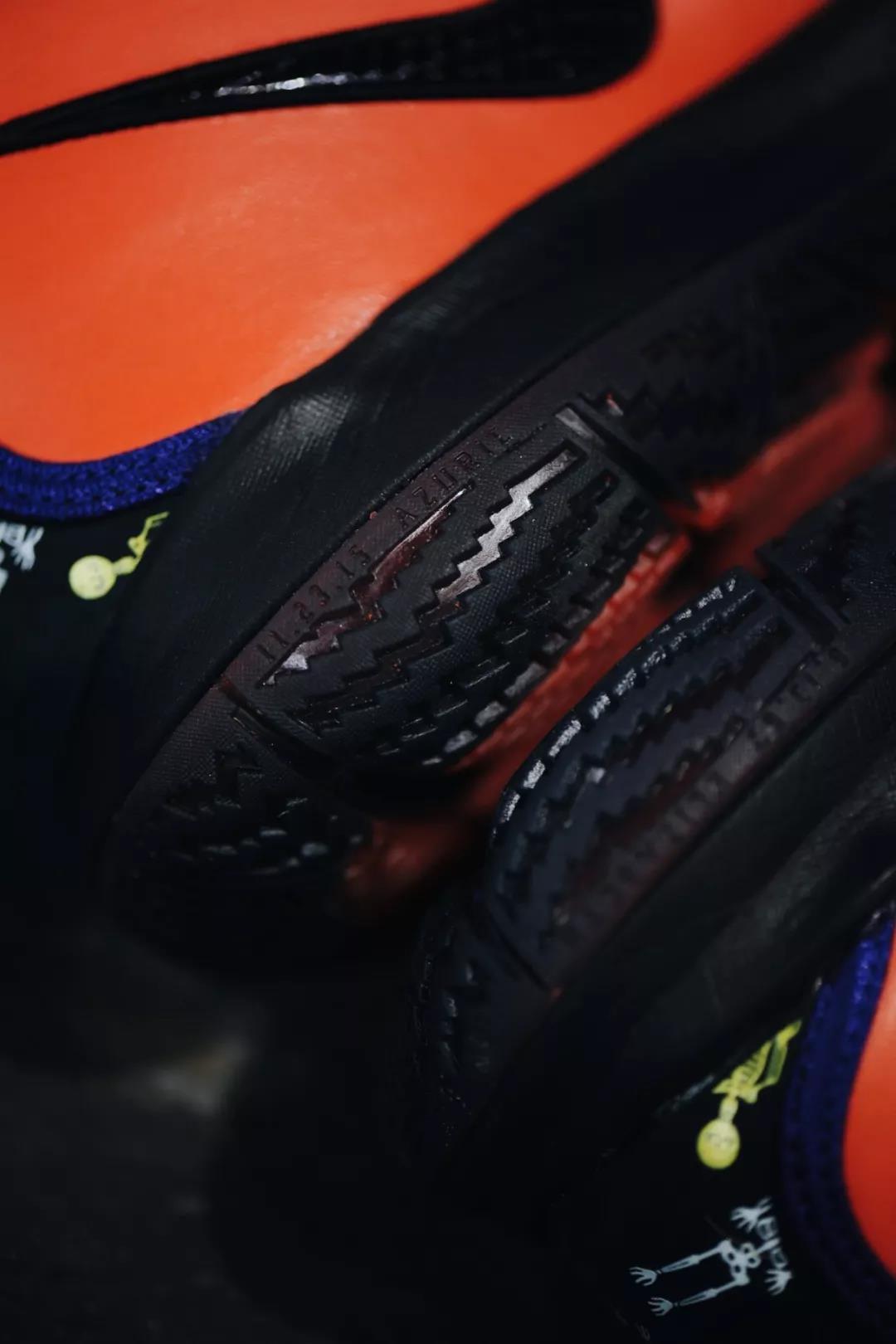 鞋款以 黑色 为主 辅以 橙色 紫色 点缀细节