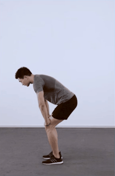 而膝盖的热身,则是双脚与肩同宽,双手扶膝,下蹲至半蹲高度后伸直双腿。
