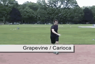 横向跑:双脚交替横向跑,目视身体的正前方。每次两组,一组10米左右。