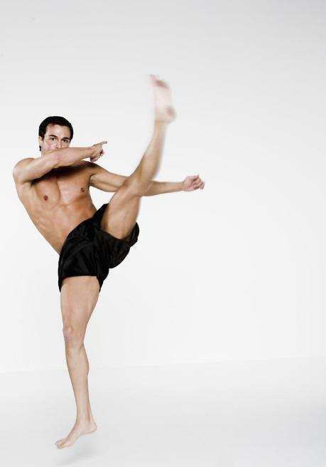动态拉伸,顾名思义,以运动的速度、动力和肌肉用力去制造伸展。夸张的踢击动作和徒手箭步蹲行进等都属于动态伸展。