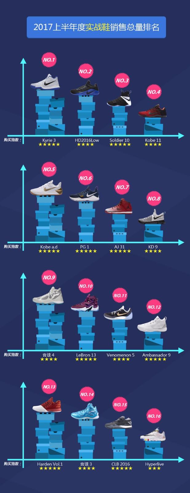 想知道最被大家认可的篮球鞋?想选购最具性价比的实战款?想做混搭界中鞋子最IN的潮人?好吧,想了这么多没有数据说话岂不是成了空想?OK,你们期待的2017年上半年球鞋销量排行榜这就呈上来!