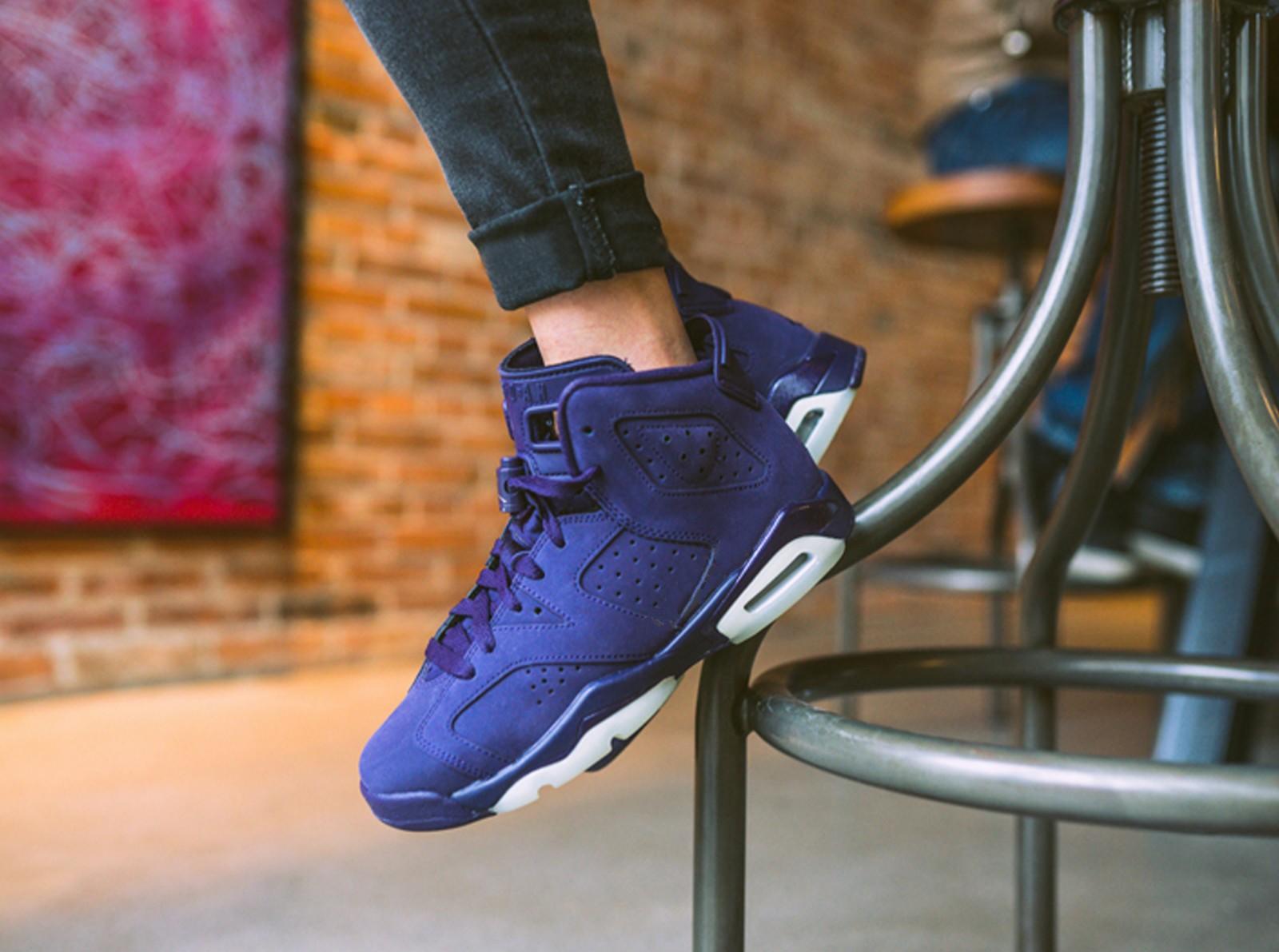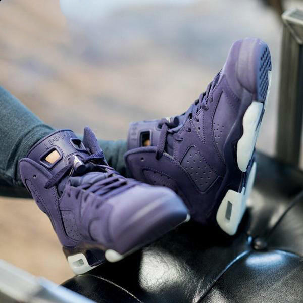 随着潮流的兴盛变迁,越来越多的女生加入到了AJ的行列中。乔丹首冠的AJ6则是众多女生最喜爱的系列之一,jordan brand也经常发售女生的专属配色。这款紫色就是其中之一,也是女生最热衷于搭配的配色之一,运动风十足的外表下不乏腹黑女王的感觉。