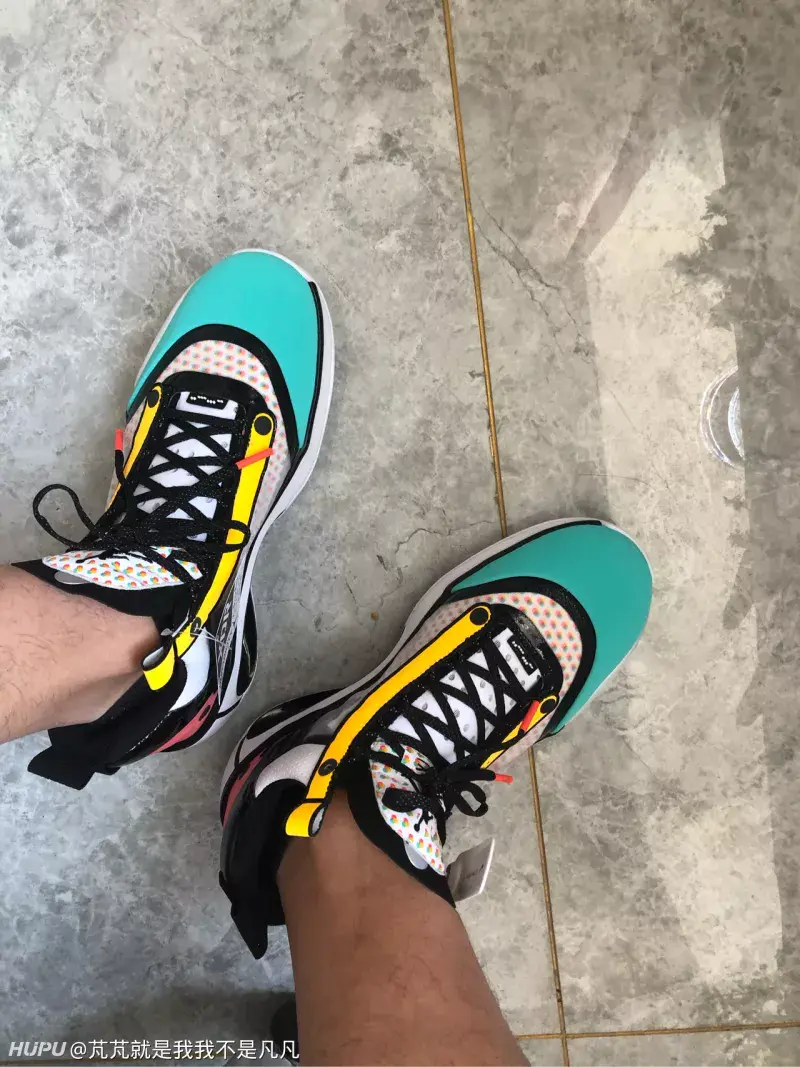 之前看有人说花里胡哨不好看 但我穿鞋就喜欢有颜色冲击感的 说颜色太多 也要讲究搭配 搭配的好 颜色再多也觉得好看 我之前买了aj34白镭射 哈登4纯粉 利6阴阳 都是一些颜色很鲜明 有视觉冲击感的鞋(可能因为我学的专业是传媒)经常看到有人发帖说纯色或者简单的鞋才好压马路 篮球鞋只能上球场 我不同意