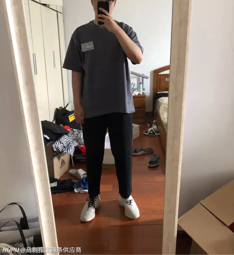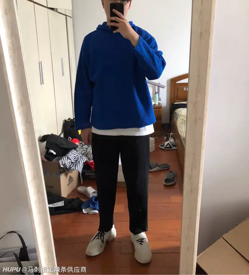 两套look 灰色T是ader的塑料贴图T 蓝色卫衣是三宅褶皱线的针织卫衣 强烈推荐