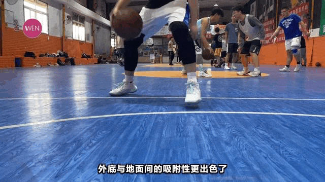 后来我仔细想了一下,一是因为这双鞋后跟整体的态势是向内收拢的,而且港宝的面积非常大,二是因为我们实战一直都穿精英袜,那个袜子比较厚,而且摩擦力比较好。