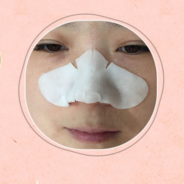 撕开包装,稀拉克儿棉质鼻贴膜长这样,上下都有剪裁,没有间隙,可以紧密服帖于鼻子上。
