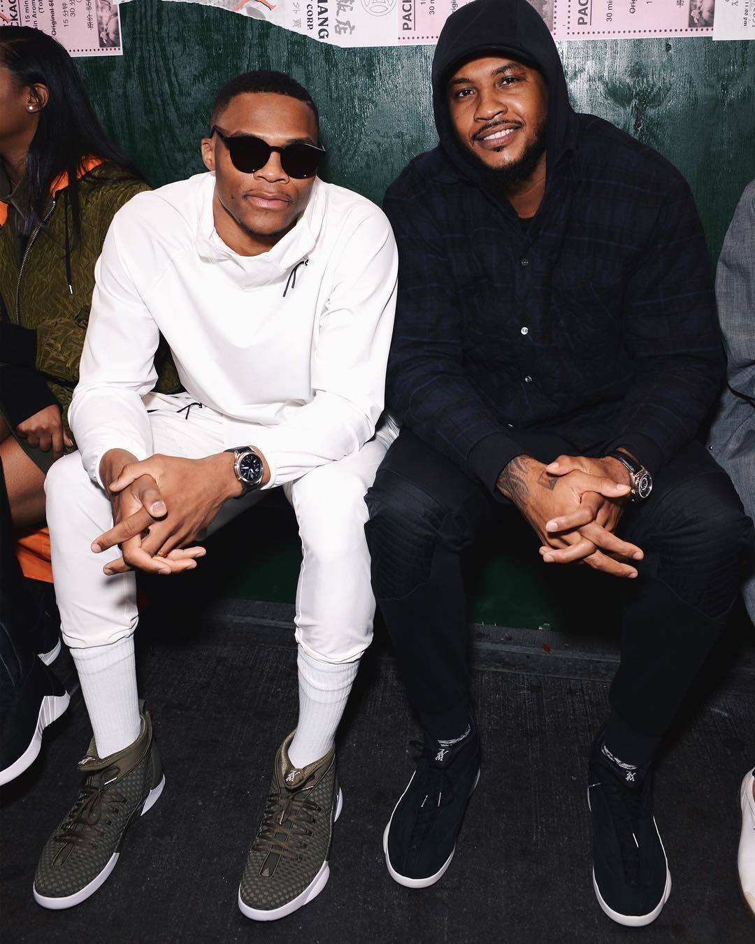 既然是潮流达人,那么纽约时装周这样的大秀场,又怎能少得了威斯布鲁克的身影呢?作为世界上最具知名度的时尚盛会,纽约时装周向来是群星荟萃,而威少自然不会错过这样展示时尚嗅觉的机会,一身Public School x Jordan Brand 的纯白套装,搭配橄榄色的PSNY x Air Jordan 15显得星味十足,潮流指数爆表。