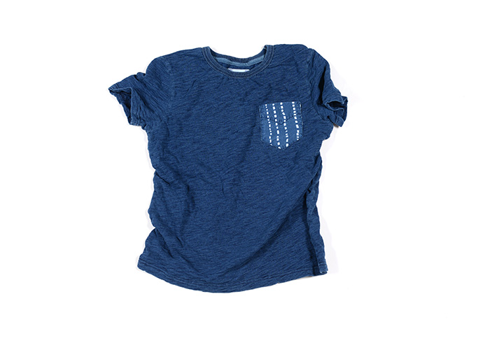 复刻80s法国蓝染圆领tee,合身剪裁,180g有机棉配以蓝染工艺,保证了夏季穿着的舒适感。衣服会随着使用者的穿着而逐渐产生色落,从而形成一种特有的古旧美感。