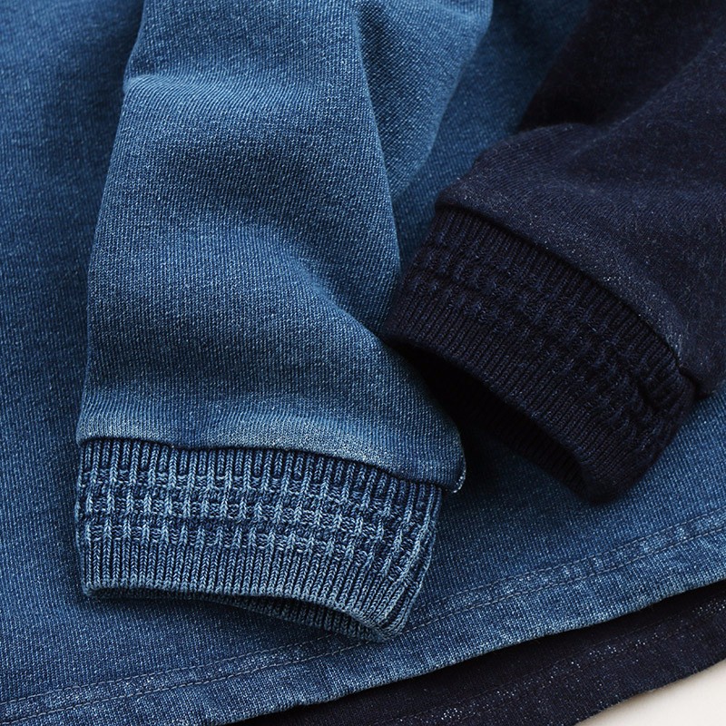 做旧水洗搭载美式随性风格面料,面料坠感好,厚度适中,不仅可以外穿还可以打底,领口织带加固有效防止领口变形,也更突显了怀旧风格。别具一格的口袋设定配以不规则点状线条更是复古味十足,手染工艺也同时赋予了它如生命般的落色。