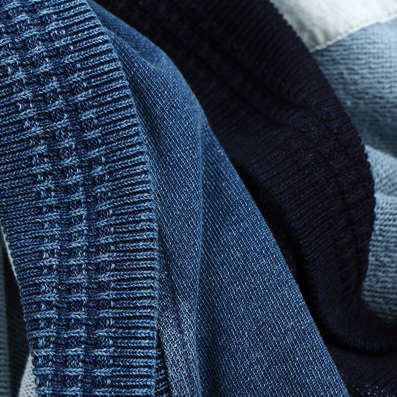 为了向那个年代的蓝色致敬,VR把天然靛蓝用到牛仔以及针织服饰上,搭载符合当下审美的剪裁与轮廓,参考亚洲人的身材比例,打造出最具性价比的indigo系列,借鉴了苗疆手工艺人的木梭机菱纹土布工艺,手作感极强。