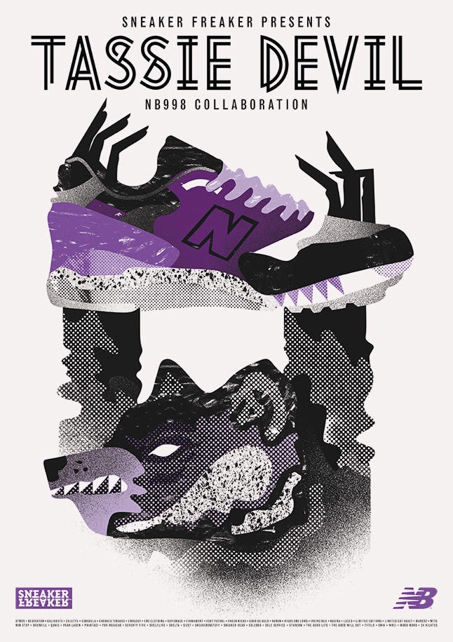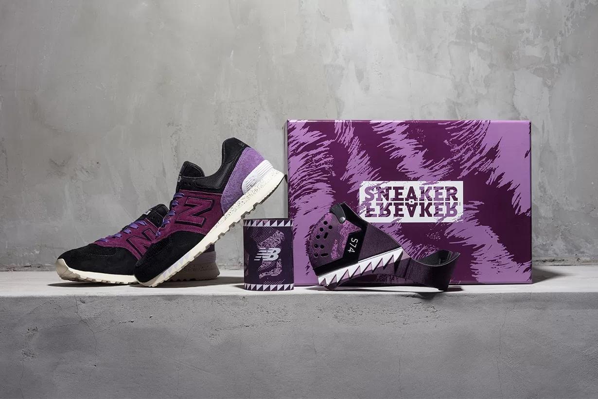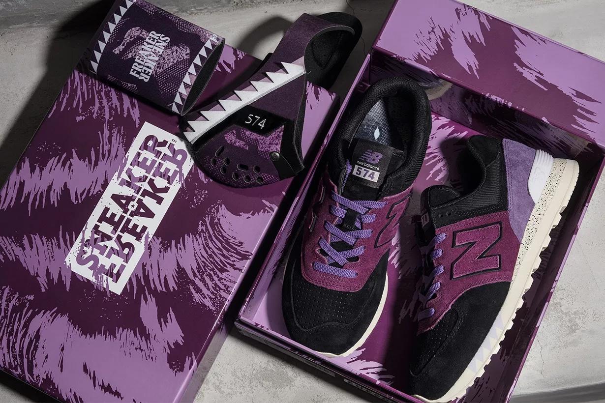 这双ML574SNF就是来自与《SNEAKER FREAKER》杂志联名的 998 “Tassie Devil”,以澳大利亚稀有物种袋獾为灵感,紫色和黑色作为主色调进行设计打造。