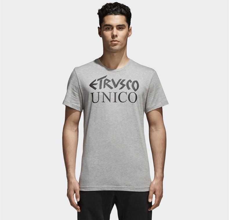 胸前Etrusco Unico意为唯一的伊特鲁里亚人。伊特鲁里亚是位于意大利中西部的著名古国,曾以深湛的艺术而著称于世。纯棉T恤穿着舒适,衣身轻盈顺滑,场下休闲穿着简洁大方。