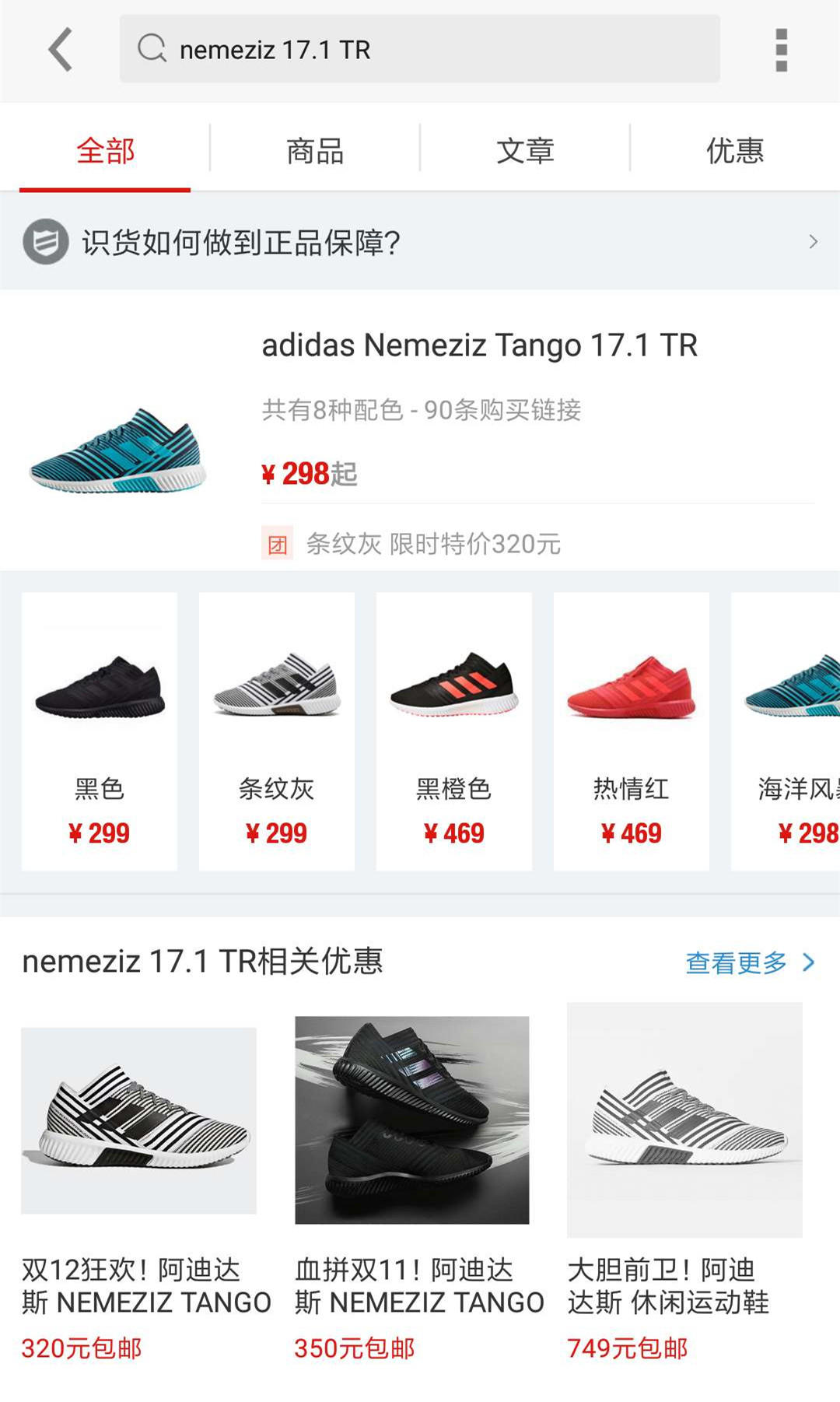 阿迪于3月底推出最新殒命配色,目前该配色中端碎钉鞋款淘宝最低价在499左右,此前推出的三个配色鞋款的价格有所下降,种草已久的朋友们可以考虑入手了。优惠价基础上还可使用店铺满399减10的优惠券。这款猎鹰18包括殒命之前的三个配色,尺码齐全。经典摩擦纹路和流行的动态鞋领相结合,大底柔软舒适,六边形碎钉提供良好抓地力。