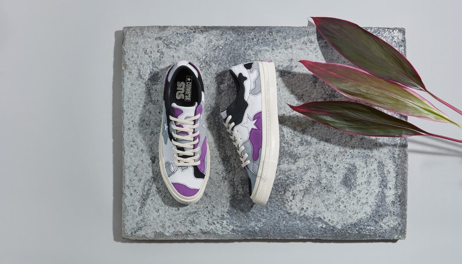 提前预定2018上半年最佳One Star?Sneakersnstuff x Converse One Star除了令人眼前一亮的配色方案之外,较低的溢价也是无虑入荷的另一原因。Sneakersnstuff是来自瑞典的球鞋单元,一直以来是北欧最具影响力的Sneaker势力之一,此次与Converse更是诚意满载。“Deep Lavender”为设计发想的两种迷彩配色以不同的皮革材质与不同色调拼接打造,完成度极高。4月12日正式发售。