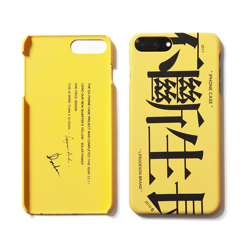 LIFEGOESON一直以独特的理念来创作自己的产品,这款黑黄配色的手机壳就完美的体现了他们的品牌定位。90%pc材质包裹防滑涂层,带来极致细腻的手感,“不断生长”四字印花图案轻松体现潮人态度。