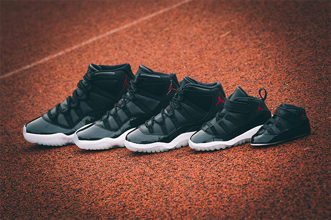 除了丰富的配套周边,Air Jordan 11“72-10”还带来全尺码的家族套装,从婴儿鞋款、儿童鞋款、GS 大童女款到男款一应俱全。