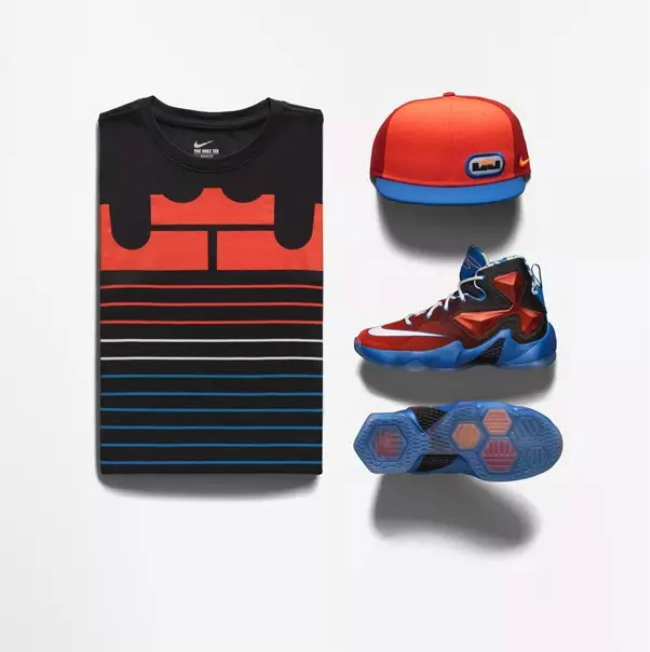 LeBron 13 Mini Hoop是向LeBron James儿时训练用的可调式篮筐致敬。鞋款的配色来自篮球架的主色调,渐变的图案则象征着可调节的篮筐高度。